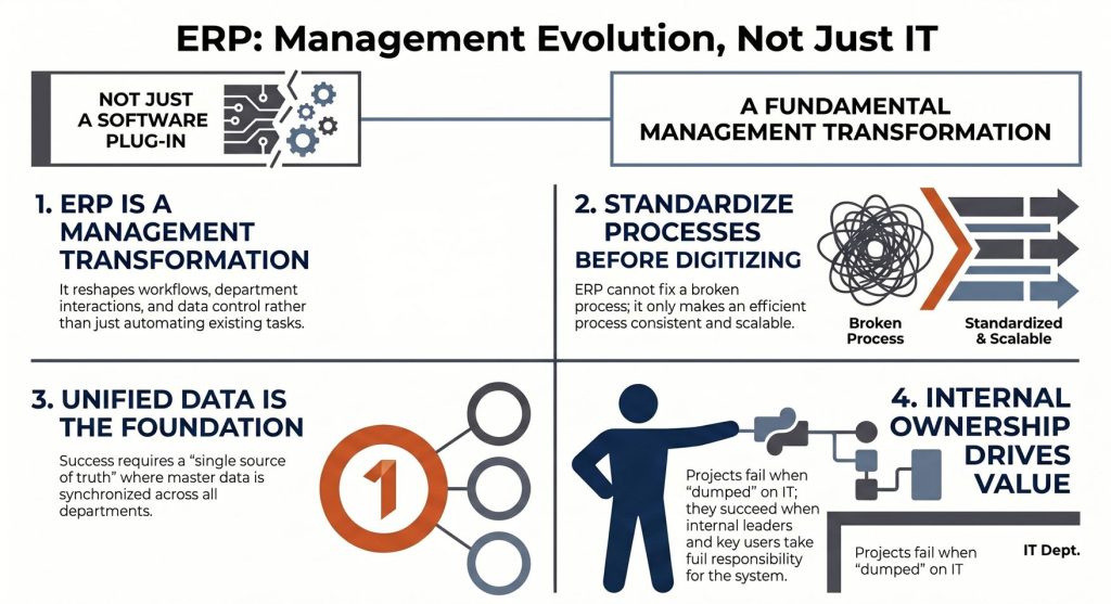 Trong nhiều doanh nghiệp sản xuất, ERP thường được kỳ vọng là “liều thuốc giải” cho hàng loạt vấn đề vận hành: dữ liệu rời rạc,